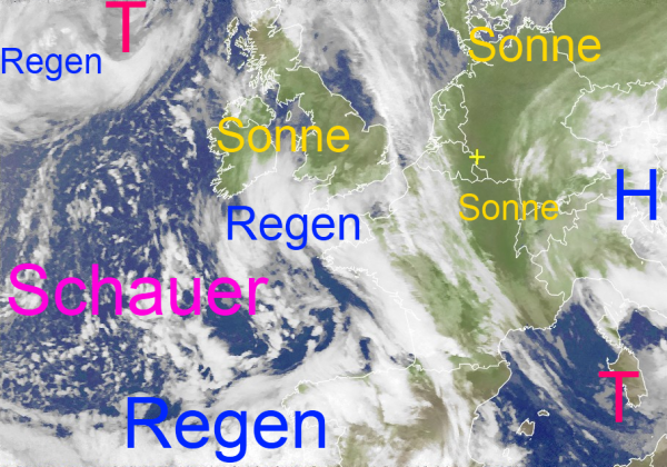 Doch die Wolken über dem Atlantik rücken immer näher und werden morgen mit Regen im Gepäck bereits den Westen unseres Landes erreichen. Gesteuert werden diese Wolken von dem mächtigen Tiefdruckgebiet nordwestlich der Britischen Inseln.