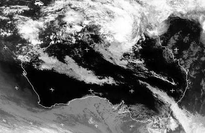 Auf dem Satellitenbild von Donnerstag früh sind Schauer- und Gewitterzellen im Norden und Nordosten von Australien gut zu erkennen. Die Hochreichenden, und damit kalten Wolkenoberkanten (im Infrarotbild weiß dargestellt) heben sich stark vom warmen Erdboden ab (im Infrarotbild schwarz dargestellt).