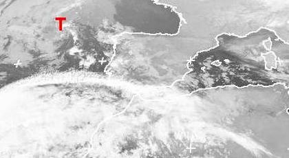 Ein Atlantiktief nordwestlich von Portugal bringt heute teils kräftige Schauer und Gewitter in den Westen der Iberischen Halbinsel. (Bildquelle: NERC Satellite Receiving Station, Dundee University, Scotland, http://www.sat.dundee.ac.uk/)