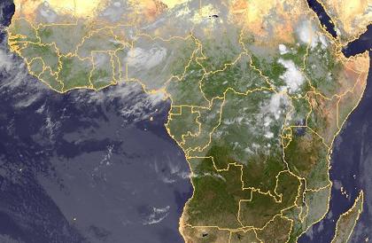 Über dem zentralen Afrika haben sich kräftige Schauer und Gewitter entwickelt. Diese entstehen jahreszeitlich bedingt in Zusammenhang mit der innertropischen Konvergenzzone.