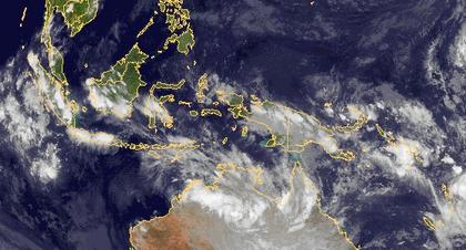 Über Indonesien und dem Norden Australiens treten z.Z. kräftige Schauer und Gewitter auf. Diese gehören zu den konvektiven Strömungen der innertropischen Konvergenzzone, und sind auf dem Satellitenbild gut an den einzelnen Schauer- und Gewitterzellen erkennbar.