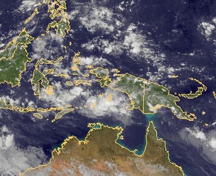Schauer und Gewitter über Indonesien und Neuguinea