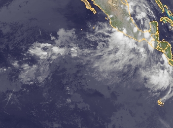 Über dem östlichen Pazifik ist die innertropische Konvergenzzone an der Schauerbewölkung gut erkennbar. Über Mittelamerika haben sich Schauer und Gewitter entwickelt.