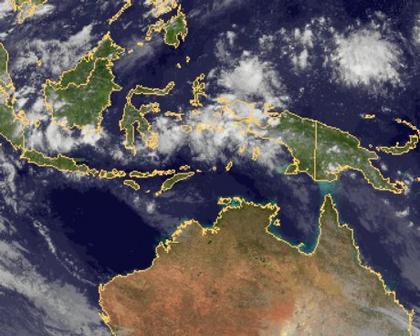 Über Neuguinea haben sich im Bereich der innertropischen Konvergenzzone Schauer und Gewitter entwickelt.