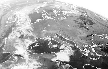 Auf dem Satellitenbild von Dienstag früh ist Europa nahezu wolkenfrei. Dafür sorgt ein ausgeprägtes Hochdruckgebiet mit Zentrum über Weißrussland. An seiner Westseite erkennt man ein dichtes Wolkenband, dass sich von Norwegen über Großbritannien bis nach Spanien erstreckt. Diese Wolken gehören zu Tiefausläufern, die von Westen her auf das Hoch 'auflaufen' und von diesem am weiterziehen gehindert werden. Sie bringen heute Schauer, zum Teil auch Gewitter von Großbritannien bis Spanien.