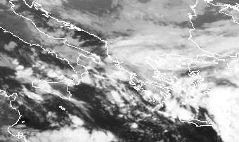 Auf der Rückseite eines Tiefs über Griechenland strömt zunehmend kalte Luft aus Norden über das, im Vergleich zur Luft, relativ warme Wasser des Mittelmeers. Dadurch entsteht eine labile Schichtung, in der sich zum Teil kräftige Schauer und Gewitter bilden, wie sie hier von Sizilien bis an die Griechische Küste zu erkennen sind.