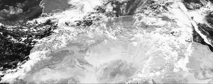 Zahlreiche weiße Flecken auf dem Satellitenbild von Samstag Mittag kennzeichen Schauertätigkeit an den Küsten von Marokko bis nach Tunesien. Ursache hierfür ist mit der Höhe eingeflossene kühle Luft und der damit verbundenen Labilisierung der Atmosphäre. Im Landesinneren sind dagegen größere Wolkenlücken, hier ist die Luft in der Höhe wärmer, so dass die Bedingungen für Schauer nicht so gut erfüllt sind. (Bildquelle: NERC Satellite Receiving Station, Dundee University, Scotland, http://www.sat.dundee.ac.uk/)