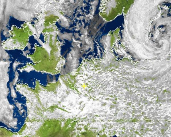 Dieser Wirbel im Satellitenbild über der Ostsee sorgte für ein kühles und wechselhaftes Pfingstfest in Europa. Die Temperaturen bewegten sich nur wenig über 10 Grad C-Marke, nur an den Küsten war es etwas sonniger, aber auch sehr windig. Wetterbesserung durch ein Zwischenhoch naht nun. Über England lacht die Sonne schon und morgen lacht sie dann in Deutschland.