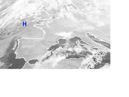Auf dem Satellitenbild von Dienstag früh sind über der Iberischen Halbinsel nur wenige Wolken zu erkennen, während weite Teile von Mitteleuropa wolkenverhangen sind. Für das freundliche Wetter in Spanien und Portugal sorgt ein Hoch mit Zentrum westlich des Englischen Kanals. Auf seiner Ostseite lenkt es allerdings feucht-kalte Luftmassen nach Deutschland die hier für dichte Wolken mit etwas Regen oder Schnee sorgen. (Bildquelle: NERC Satellite Receiving Station, Dundee University, Scotland, http://www.sat.dundee.ac.uk/)