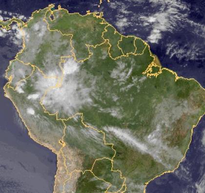 Im Nordwesten Brasiliens gab es starke Regenfälle. Auf dem Satellitenbild sind deutlich die verursachenden Wolken erkennbar.