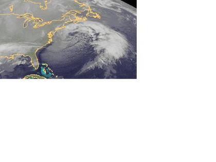 Auf dem Satellitenbild von Donnerstag früh ist ein Wolkenwirbel über dem Atlantik vor der amerikanischen Ostküste gut zu erkennen. Er gehört zu einem sich dort befindenden Sturmtief und sorgt für kräftigen und ergiebigen Schneefall und Sturm von den Neuenglandstaaten bis Neufundland. Im Laufe des Tages wird das Tief jedoch weiter auf den Atlantik hinausziehen.