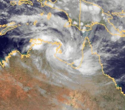 Im Norden Australiens befindet sich das kräftige Tief 'Paul', das ergiebige Niederschläge und Sturm bringt. Z. Z. werden Windgeschwindigkeiten von 110 km/h erreicht.