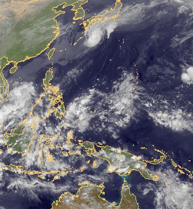 Vor der Südjapanischen Küste befindet sich der Taifun 'Chaba'. Dieser zieht unter weiterer Abschwächung an Japan vorbei. In seinem Bereich werden z.Z. Windgeschwindigkeiten von 170 km/h erreicht. Über Neuguinea haben sich jahreszeitlich bedingt Schauer und Gewitter entwickelt.