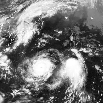 Der Taifun 'Mawar' liegt südlich von Japan, östlich von ihm liegt der kleinere Sturm '12W'. Marwar wird im Laufe der neuen Woche in Japan erwartet. In Japan gibt es schon zur Zeit viele Gewitter.