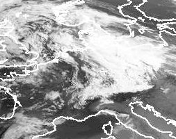 Die dichten Wolken über de Osthälfte Deutschlands gehören zum Tief 'Erdmann', das mit sehr kräftigem Regen nordwärts auf die Ostsee zieht. Von Westen lockern die Wolken dabei auf. (Bildquelle: NERC Satellite Receiving Station, Dundee University, Scotland, http://www.sat.dundee.ac.uk/)