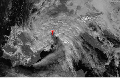 Auf dem Satellitenbild von Donnerstag Mittag ist über Südfrankreich ein Wolkenwirbel gut zu erkennen. Er gehört zu dem Tief 'Floora', dass heute für kräftige Niederschläge und Wind von Spanien bis Italien sorgt. Morgen wird vor allem Italien von ihm beeinflusst.