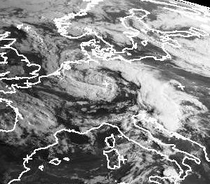 Das Tief 'Florence' liegt heute genau über Deutschland. Seine Wolkenspirale ist dabei gut zu erkennen. So wird auch deutlich, dass in einigen Regionen die Sonne öfter scheinen kann. Vor allem im Norden und Südwesten ist es dagegen zu teils auch anhaltendem Regen gekommen. (Bildquelle: NERC Satellite Receiving Station, Dundee University, Scotland, http://www.sat.dundee.ac.uk/)