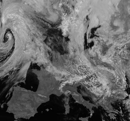 Ein Hoch über Frankreich sorgt für meist wolkenfreien Himmel über Spanien und Südfrankreich. Auch nach Norden bis zur Nordsee ist es meist freundlich, hier erkennt man aber schon deutlich mehr Wolken. Sie gehören bereits zur Warmfront des Tiefdruckwirbels 'Franjo' auf dem Atlantik (am linken Bildrand). Das Tief zieht mit seinen Wolken allmählich weiter nach Deutschland.