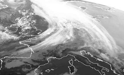 Tief 'Jeannette' bei Island bestimmt das Wetter in Europa. Die Warmfrontbewölkung erstreckt sich von Schweden bis nach Ungarn. Dahinter folgt von Westen die Kaltfrontbewölkung, die in einem Band bis in die Biskaya reicht. Die Kaltfront zieht rasch nach Südwesten und wird Deutschland am Abend und in der Nacht Regen bringen.