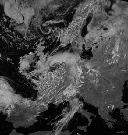 Über der Nordsee liegt das Zentrum von Tief 'Lars', dessen Ausläufer mit einem dichten Wolkenband heute nordostwärts Deutschland überquert haben. Man erkennt, wie von Frankreich her auf ihrer Rückseite aufgelockerte Bewölkung, in der jedoch auch Schauer- und Gewitterzellen liegen, folgt.