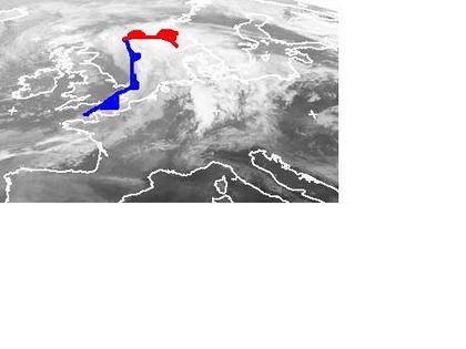 Auf dem Satellitenbild von Donnerstag früh erstreckt sich ein dichtes Wolkenfeld von der Nordsee und Südskandinavien bis an die Alpen. Es gehört zu dem Tief 'Monika' mit seinem Zentrum über der Nordsee. Die Ausläufer dieses Tiefs sorgen heute vor allem im Norden und Westen Deutschlands für Regen, teils auch für Gewitter. (Bildquelle: Copyrigt EUMETSAT, NERC Satellite Receiving Station, University of Dundee)