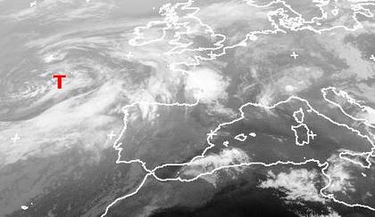 Das fast ortsfeste Tiefdrucksystem 'Quintus' erreicht mit seinen Wolken allmählich die Iberische Halbinsel und den Westen Großbritanniens. Bis Freitag wird er bis zum Ärmelkanal weiterziehen und seine Fronten auch nach Deutschland gelangen, womit uns neue, teils kräftige Schauer und Gewitter erwarten. (Bildquelle: NERC Satellite Receiving Station, Dundee University, Scotland, http://www.sat.dundee.ac.uk/)