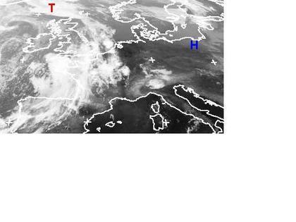 Dichte Wolken erstrecken sich auf dem Satellitenbild von Mittwoch früh von Island über die Nordsee bis nach Frankreich, Nordspanien und Portugal. Sie gehören zu den Ausläufern von Tief 'Renate' bei Island und bringen teils kräftige Schauer und Gewitter mit. Allerdings sorgt das Hoch 'Thomas' über Polen dafür, dass sich die Fronten nur langsam weiter nach Osten verlagern können. (Bildquelle: NERC Satellite Receiving Station, Dundee University, Scotland, http://www.sat.dundee.ac.uk/)
