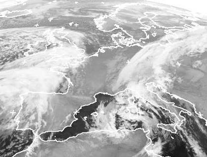 Das alte Tief 'Tina' ist nach Nordosteuropa abgezogen. Seine Wolken lagen in der Nacht aber noch über dem Südosten Deutschlands. Dahinter hat sich jedoch vorübergehend ein Gebiet mit nur aufgelockerter Bewölkung durchgesetzt. Bei Schottland liegt jedoch das neue Sturmtief 'Ulrike'. Seine Wolken liegen auf dem Satellitenbild noch über dem Atlantik. Bis zum Mittag haben sie aber bereits den Westen Deutschlands mit Regen erreicht und sie breiten sich weiter ostwärts aus. (Bildquelle: NERC Satellite Receiving Station, Dundee University, Scotland, http://www.sat.dundee.ac.uk/)