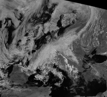 Wärend Tief 'Valeska' den zentralen Bereich Europas in dichte Wolken hüllt, bleibt Hoch 'Quinn' über dem Schwarzen Meer stationär und sorgt dort für große wolkenfreie Gebiete.
