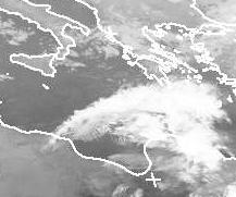 Die dichten Wolken südlich von Griechenland gehören zu einem Tief mit Zentrum zwischen Süditalien und Griechenland. Dieses Tief wird sich heute im Laufe des Tages unter Abschwächung etwas nach Osten verlagern, dabei aber dichte Wolken und Schauer oder Gewitter nach Griechenland bringen. (Bildquelle: NERC Satellite Receiving Station, Dundee University, Scotland, http://www.sat.dundee.ac.uk/)