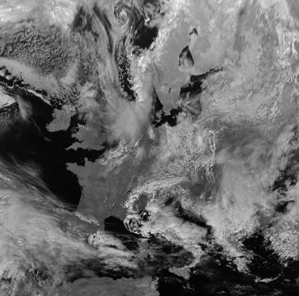 Über dem östlichen Mitteleuropa liegt am Freitag noch die aufgelockerte Bewölkung einzelner Schneeschauer. Von Frankreich bis nach Irland sorgt ein Hoch für ein weites wolkenfreies Gebiet. Über der Nordsee zieht dagegen das Tief 'Yve' mit seinen dichten Wolken südwärts auf Deutschland zu, das es in der Nacht und am Samstag überquert.