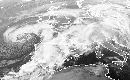 Tiefer Luftdruck über Nordwesteuropa bringt von Südwesten immer wieder dichte Wolken mit nur wenigen Auflockerungen nach Deutschland. Über dem Atlantik erkennt man die Wolkenspirale von Tief 'Xenia', das morgen nach Deutschland zieht und auch stürmischen Wind mitbringt. (Bildquelle: NERC Satellite Receiving Station, Dundee University, Scotland, http://www.sat.dundee.ac.uk/)
