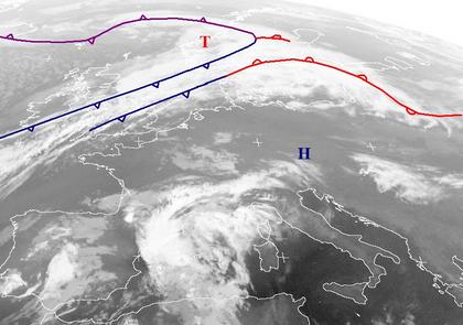 Das Satellitenbild von Montag Morgen zeigt starke Bewölkung von den Britischen Inseln bis nach Skandinavien und bis zum Baltikum. Hier sorgt das Tief 'Simone' im Zusammenspiel mit Ausläufern eines Tiefs über Nordrussland für Schauer oder Regen. Weiter nach Süden ist es unter dem Einfluss von Hoch 'Hagen' teils wolkenlos, teils aber auch neblig, was in der Darstellung jedoch nicht zu erkennen ist. Über dem westlichen Mittelmeer und Südfrankreich liegt dagegen wieder stärkere Bewölkung, hier kommt es zu Schauern und Gewittern. (Bildquelle: NERC Satellite Receiving Station, Dundee University, Scotland, http://www.sat.dundee.ac.uk/)