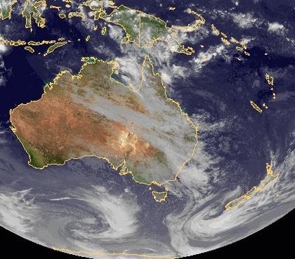 Das Wetter auf dem kontinentalen Australien und in der ozeanischen Inselwelt zeigt sich z. Z. sehr unterschiedlich. Während über Australien kaum Wolken zu erkennen sind, ist es in Neuseeland und auch auf den umliegenden Inseln sehr verregnet. Vor allem an der Westseite des neuseeländischen Gebirges ist auch sehr kräftiger Regen möglich. Hier macht sich der auf der Südhalbkugel nahende Herbst deutlich bemerkbar.