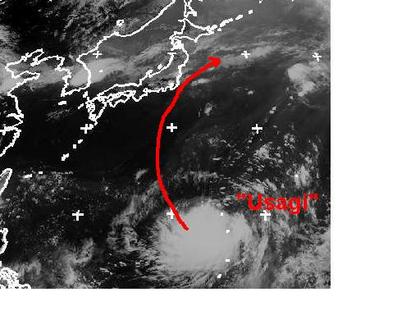 Im Westpazifik, südlich von Japan hat sich der tropische Sturm 'Usagi' aufgewirbelt. Zurzeit erreicht er mittlere Windgeschwindigkeiten von 65, in Böen 84 km/h. Berechnungen zufolge soll er langsam nach Norden ziehen, sich dabei verstärken und knapp südöstlich an Japan vorbeiziehen. Sein Endziel ist allerdings noch unklar. (Bildquelle: NERC Satellite Receiving Station, Dundee University, Scotland, http://www.sat.dundee.ac.uk/)
