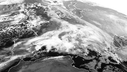 Auf dem Satellitenbild von Donnerstag früh sind dichte Wolken über weite Teile von Europa zu er kennen. Sie gehören zu einem Tiefdrucksystem, das sich mit seinem Zentrum zwischen Schottland und Island befindet. Dieses Tief beeinflusst heute und in den nächsten Tagen immer wieder unser Wetter mit Regen, aber auch mildere Temperaturen. Von Russland bis zum Schwarzen Meer sorgt Hochdruckeinfluss für ruhiges aber trübes Winterwetter.