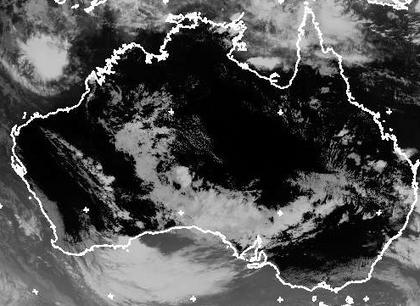 Auf dem Satellitenfoto zeigt sich Australien größtenteils wolkenfrei, besonders in Südaustralien kommt es bei teils vielen Wolken gelegentlich zu etwas Regen, im Bereich der Großen Australischen Bucht kann es auch teils kräftiger regnen oder schauern. Im übrigen Australien ist es dagegen bei nur seltenen Regenfällen meist freundlich und trocken.