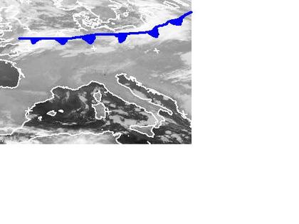Auf dem Satellitenbild von Montag früh liegt eine Kaltfront direkt über Norddeutschland. Sie wird heute im Laufe des Tages weiter nach Süden wandern und dabei wechselhaftes Wetter und kühlere Luftmassen nach Deutschland bringen. Weiter im Süden sorgt Hochdruckeinfluss meist noch für freundliches und trockenes Wetter. (Bildquelle: NERC Satellite Receiving Station, Dundee University, Scotland, http://www.sat.dundee.ac.uk/)