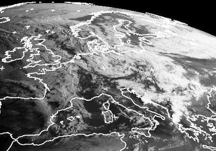 Über weiten Teilen Europas bestimmen viele Wolken das Himmelsgeschehen. Dazwischen öffnen sich aber immer wieder Wolkenlücken. Es bilden sich auch immer wieder Schauer und Gewitter. (Bildquelle: NERC Satellite Receiving Station, Dundee University, Scotland, http://www.sat.dundee.ac.uk/)