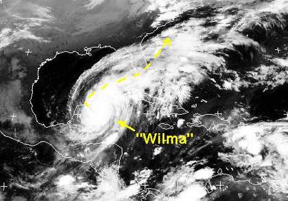 Der Hurrikan 'Wilma' hat mit Windgeschwindigkeiten von 220, in Böen bis zu 270 km/h die mexikanische Halbinsel Yucatan erreicht, er dreht bald seine Richtung auf Nordosten und nimmt Kurs auf Florida, zu Beginn der neuen Woche wird er auf der Südwestküste Floridas erwartet.