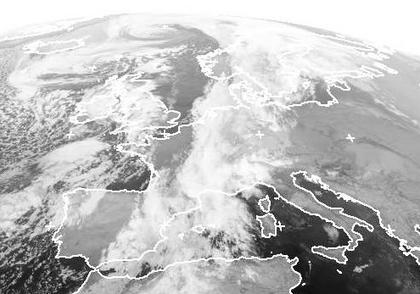 Die schwache Kaltfront eines Tiefs über dem Europäischen Nordmeer hat ein breites Wolkenband gebildet, das sich von Skandinavien über Deutschland bis nach Nordafrika erstreckt. Es bewegt sich nur langsam ostwärts. Dahinter folgt in etwas kühlerer Luft zunächst ein wolkenarmer Bereich, bevor vom Atlantik und den Britischen Inseln die Wolken von Tief 'Isolde' folgen. (Bildquelle: NERC Satellite Receiving Station, Dundee University, Scotland, http://www.sat.dundee.ac.uk/)