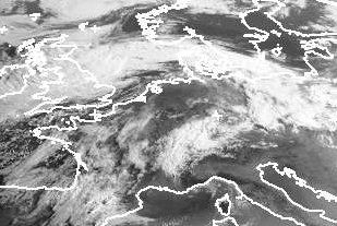 Der Ausläufer von Tief 'Dietmar' über den Britischen Inseln, der gestern teils kräftige Gewitter brachte, ist von Deutschland nach Nordosten abgezogen. Er streckt sich noch über Dänemark und Polen. Dahinter sind zunächst nur wenige Wolken zu erkennen. Auf der Nordwestseite der Alpen nimmt die Bewölkung aber schon wieder zu. Hier bildet sich das Tief 'Erdmann', das mit teils sehr starkem Gewitterregen nach Nordosten ziehen wird. (Bildquelle: NERC Satellite Receiving Station, Dundee University, Scotland, http://www.sat.dundee.ac.uk/)