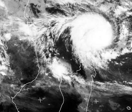 Der Zyklon 'Bondo' liegt zurzeit über den Seychellen mit mittleren Windgeschwindigkeiten von 195, in Böen 240km/h. Berechnungen zufolge soll er weiter nach Westen in Richtung Komoren ziehen und sich dabei etwas verstärken. Sein Endziel ist noch unklar. (Bildquelle: NERC Satellite Receiving Station, Dundee University, Scotland, http://www.sat.dundee.ac.uk/)
