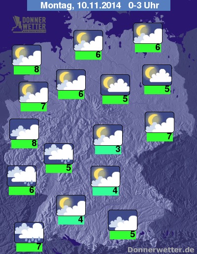 In weiten der Teilen der Nord- und Osthälfte ist mit Nebelbildung zu rechnen, im Westen und Südwesten zeigt sich der Himmel locker oder wechselnd bewölkt.