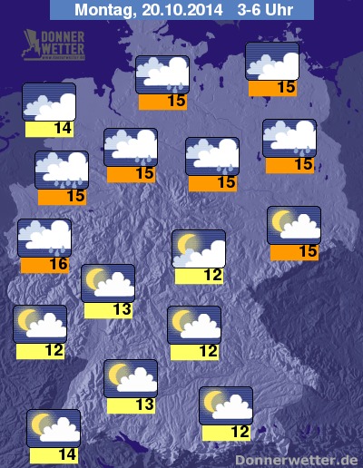 In der Nacht zum Montag zieht von Nordwesten her ein Regengebiet rein, davor und dahinter ist die Bewölkung locker bis aufgelockert bewölkt. Die besten Konditionen zum Sternegucken bietet der Süden Deutschlands, hier ist es häufig nur locker bewölkt.