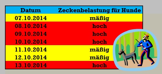 Hohe Hundezeckenbelastungen in dieser Woche. Bei Untersuchungen zeigten sich durchschnittlich 2-3 Hundezecken pro 15 Minuten.