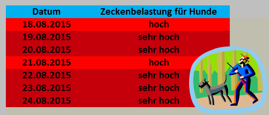 Der Zeckenbesatz im Unterholz ist in dieser Woche sehr hoch. Die Regenfälle der letzten Tage waren mitunter so ergiebig, dass auch in den kommenden, deutlich trockeneren Tagen die Wälder gut durchfeuchtet bleiben. Hinzu kommt ein Temperaturanstieg im Laufe der Woche. Auch zu Beginn der neuen Woche bleibt das Zeckenrisiko erhöht - dann kündigt sich schwül-warmes Gewitterwetter an.