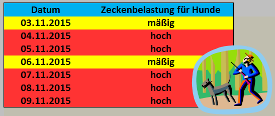 Zu dieser Jahreszeit begünstigen besonders milde Nächte mit etwas Regen das Zeckenrisiko. Am kommenden Wochenende sind die Voraussetzungen für die Vampire daher sehr günstig.