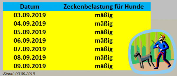 Der Zeckenbesatz zieht aufgrund zeitweiliger Schauer zwar ein wenig an, er wird aber durch die kühlen Nächte deutlich mehr ausgebremst als noch in den letzten Wochen.