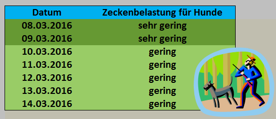 Auf die Hundezecken-Belastung wird die Wetterbesserung im Wochenverlauf nur wenig Einfluss nehmen, da die Nächte auch weiterhin kühl bleiben.